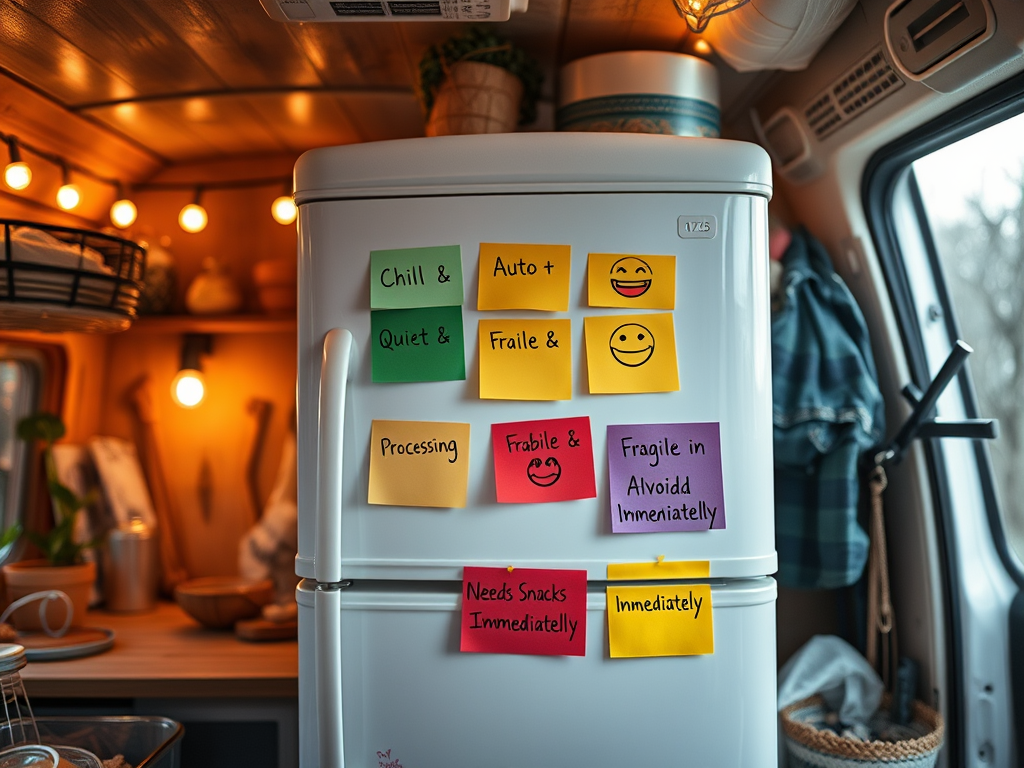 So instead of guessing each other’s emotional state, you build a system in a cheeky, visual way to say, “I’m fine” or “I’m one burnt pan away from a meltdown.”